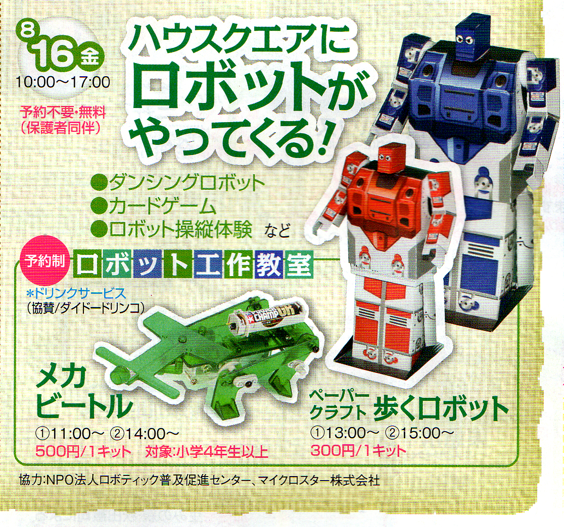 ☆2013年8月16日 ハウスクエア横浜にて、「歩くロボット工作教室」を行いました。